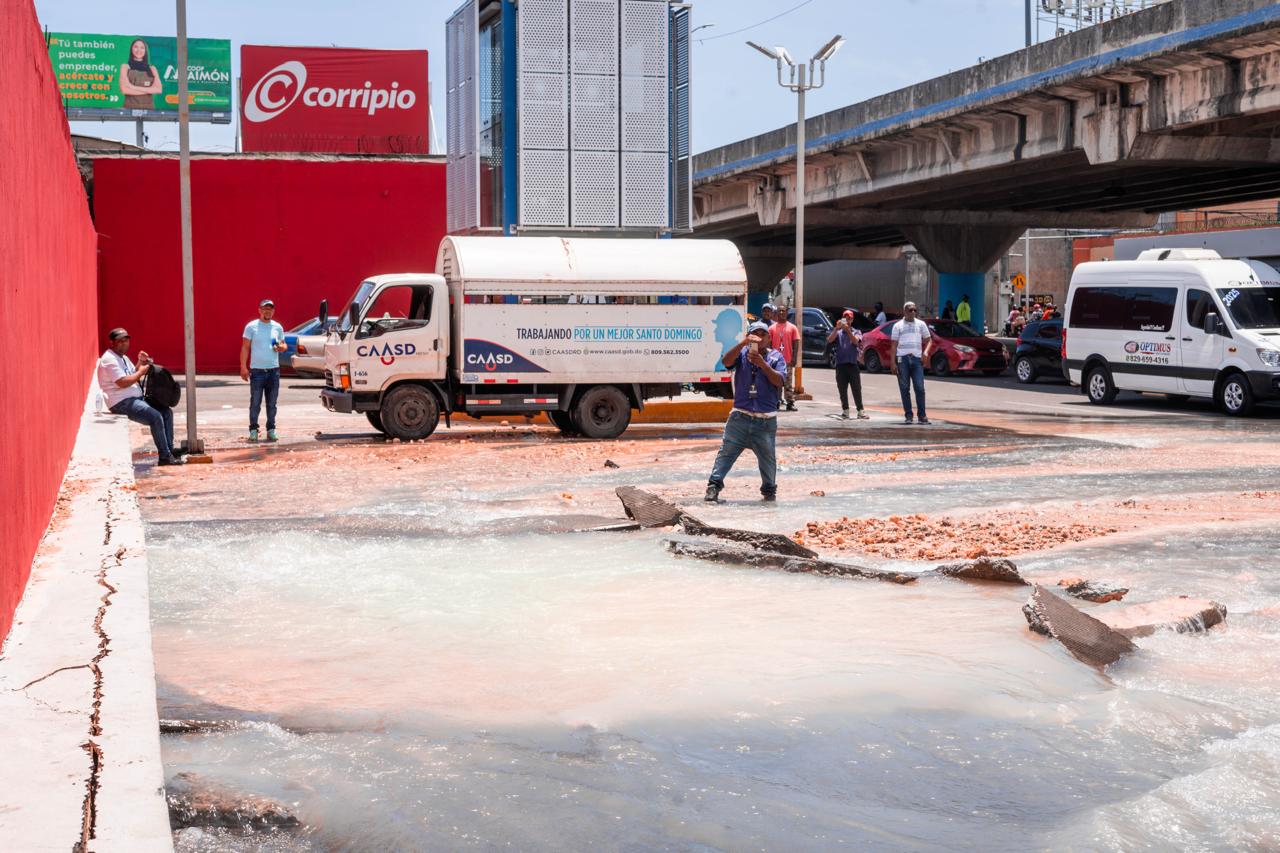 La Corporación del Acueducto y Alcantarillado de Santo Domingo (CAASD) informó que brigadas de la institución trabajan desde tempranas horas en la corrección de una avería en una línea de agua potable, ubicada en la intersección de la avenida Máximo Gómez con Nicolás de Ovando, próximo a la estación del Metro Los Taínos.
