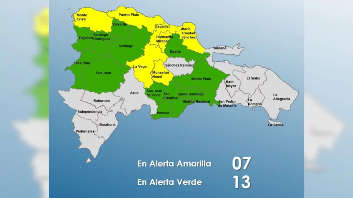 El COE incrementó los niveles de alerta ante el riesgo de crecidas de ríos, arroyos y cañadas, así como inundaciones urbanas y repentinas. En alerta amarilla (peligro moderado) se encuentran: Puerto Plata, Monte Cristi, Espaillat, María Trinidad Sánchez, Hermanas Mirabal, La Vega y Monseñor Nouel. En alerta verde (vigilancia) están: San Juan, Elías Piña, Duarte (con especial atención en el Bajo Yuna), Santiago, Santo Domingo, San José de Ocoa, San Cristóbal, Monte Plata, Peravia, el Distrito Nacional, Valverde, Santiago Rodríguez y Dajabón.