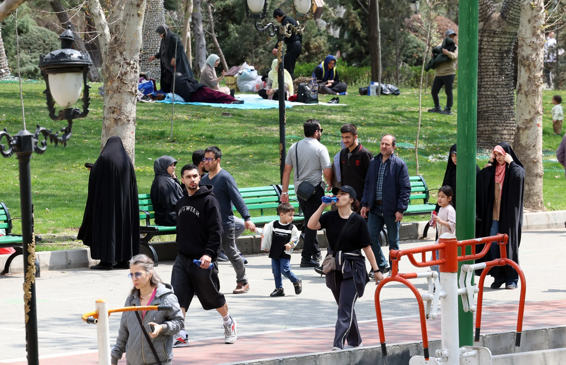 En el parque Mellat, al norte de Teherán, numerosas familias se agolparon, aunque en número algo inferior al de años anteriores. Entre ellas, Mohsen, un pintor de 38 años, explicaba a EFE mientras sus hijos correteaban: “Aprovechamos el Día de la Naturaleza para sacar a los niños al parque, para que puedan jugar un rato, pasarlo bien y relajarnos”.