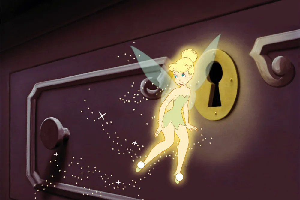 Tinker Bell fue presentada por primera vez en la película animada 'Peter Pan' de 1953 y desde entonces se ha convertido en un emblema de Disney. Su silueta, espolvoreando polvo mágico, aparece en la apertura de muchas de las películas del estudio, lo que la ha convertido en uno de los personajes más reconocibles y queridos por generaciones de espectadores.